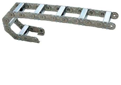 钢铝拖链的主体是由链板(采用优质钢板经淬火后再抛光镀铬/镀锌/喷塑处理)、支撑板(挤拉铝合金)、轴销(合金钢)等部件组成.使电缆或橡胶管与拖链之间不产生扭曲变形,链板经镀铬处理外形效果新颖,结构合理,灵巧强度高,该产品钢性好,不变形.安装方便,使用可靠,易拆装,不下垂.由于本产品外形精美,可在较大程度上增强机床设备的整体艺术美观效果,增强我国机床,机械设备在国际市场的竞争能力。